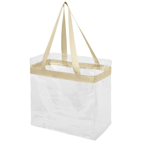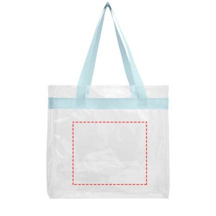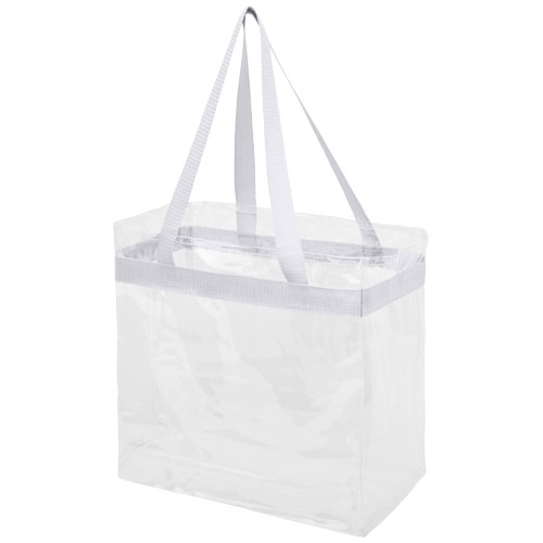 This clear tote is perfect for fans packing their stadium and event day items safely. Also great for work or school safety. Open main compartment with sporty webbing trim and dual carrying handles. Drop down height handles 27 cm. Accessories not included. Resistance up to 10 kg weight.