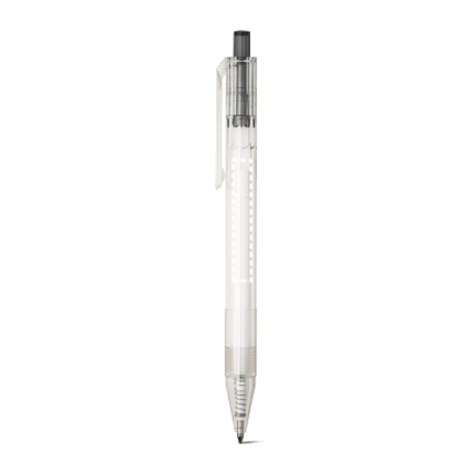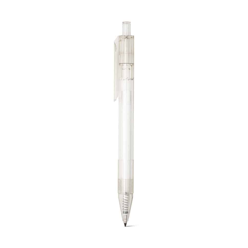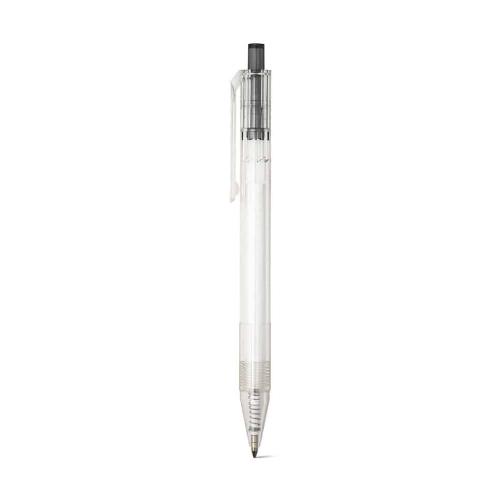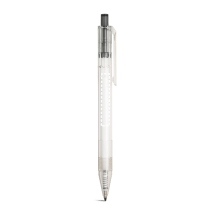 Ball pen in transparent recycled PET material with coloured button. Environmentally friendly ball pen. Black ink. ø11 x 142 mm