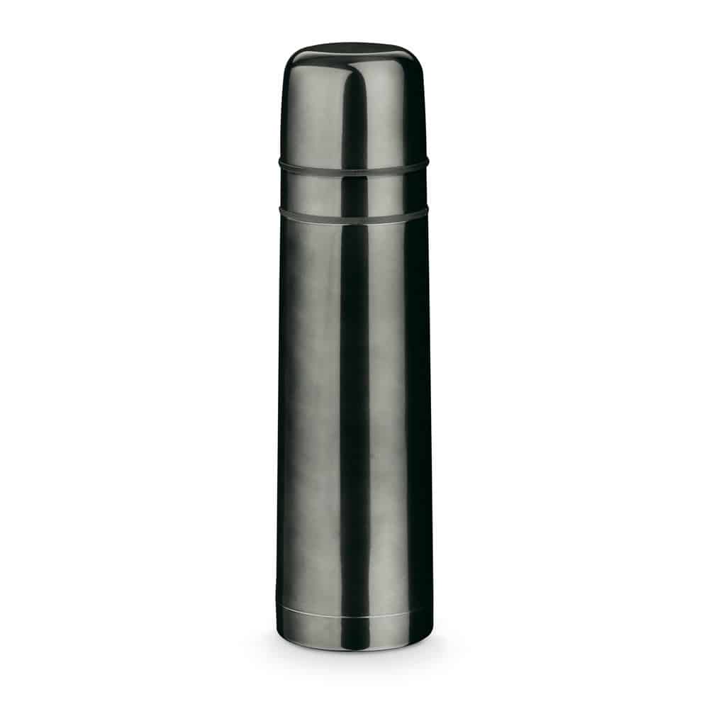 Stainless steel thermos flask with vacuum insulation and volume-capacity of 750 mL. Includes 2 cups. Supplied in a box. ø86 x 310 mm