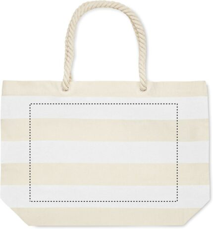 Striped beach or shopping bag in cotton with cord handle. 220 gr/m².