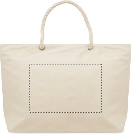 Zippered beach cooler bag in cotton with cord handle. 220 gr/m². 2mm aluminium foil insulation.