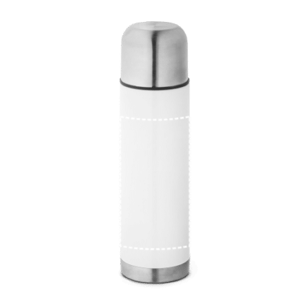 Double-walled stainless steel sublimation thermal bottle with lid with vacuum system. Capacity up to 500ml. Keeps drinks hot for 12h and cold for 24h. Supplied in a box. ø70 x 245 mm