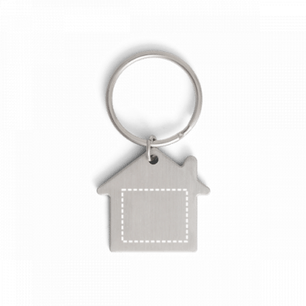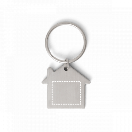 House-shaped aluminum keyring. 38 x 35 x 2 mm