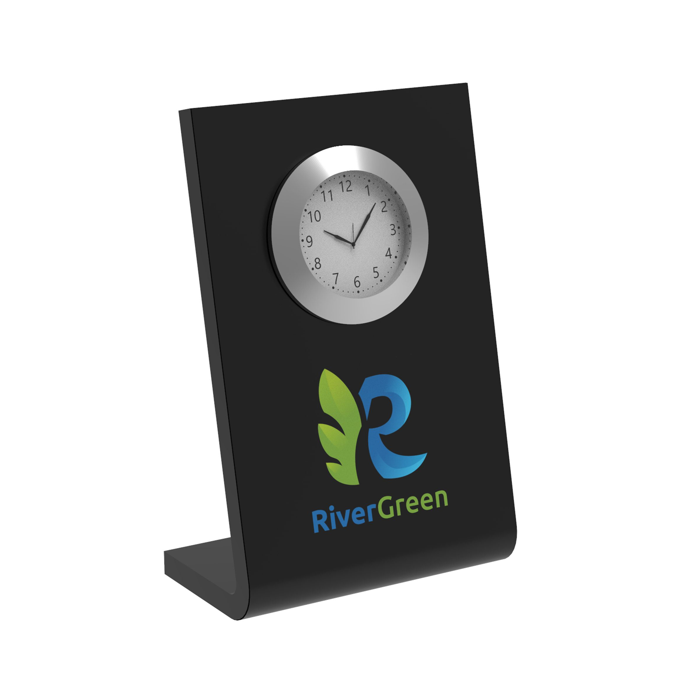 Ένα Horae Desk Clock 100 x 150 mm Μαύρο με εκτύπωση σε κύματα.