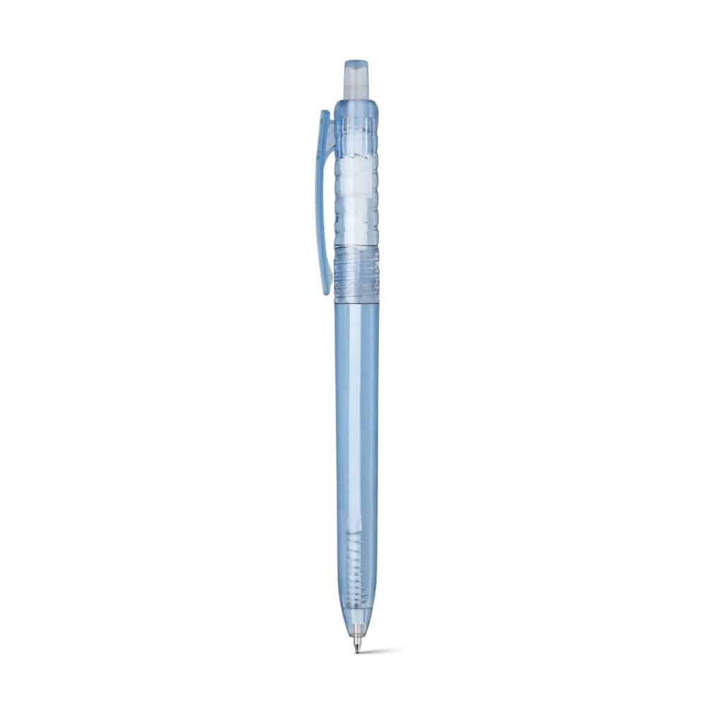 Push action ball pen in translucent rPET material. Environmentally friendly. Blue ink. ø11 x 139 mm