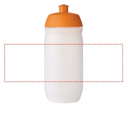 Single-walled sport bottle with a screw-fix pull-up lid. Made from flexible MDPE plastic, this squeezy bottle is perfect for sporting environments. Volume capacity is 500 ml. Made in the UK.