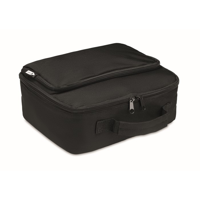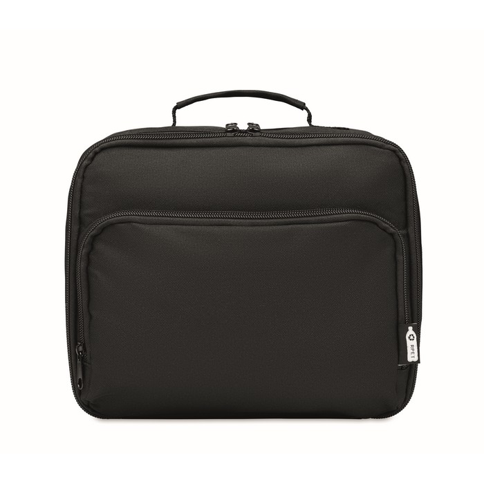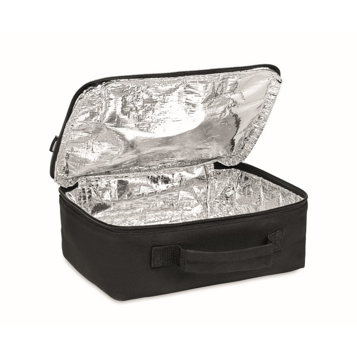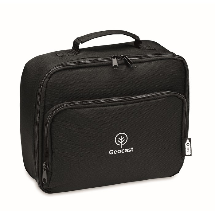 Insulated lunch/ cooler bag in 600D RPET with carry handle. 2mm aluminium foil lining.