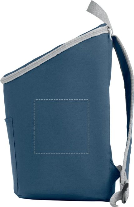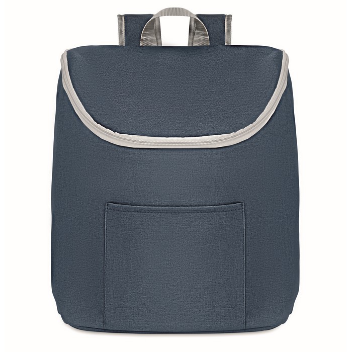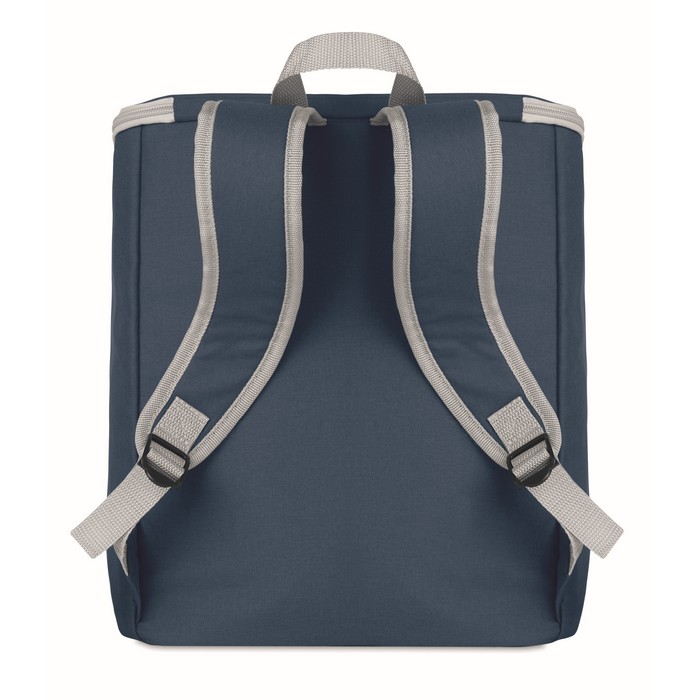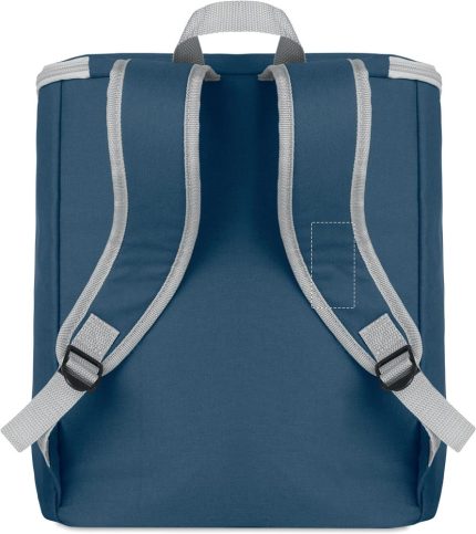 Cooler bag and backpack in 300D/PU polycanvas with front pocket. It has a 2 mm inside aluminium foil.