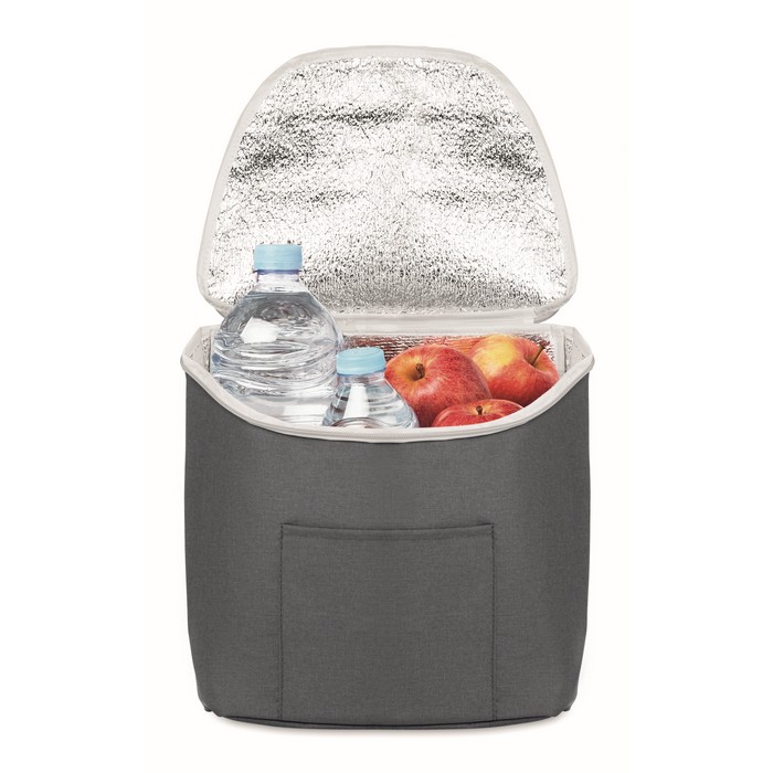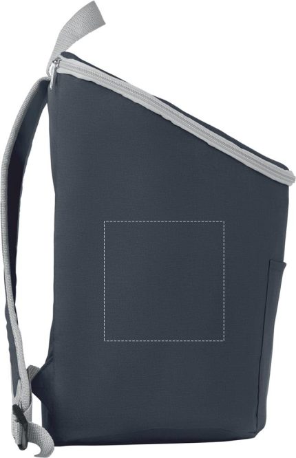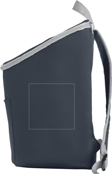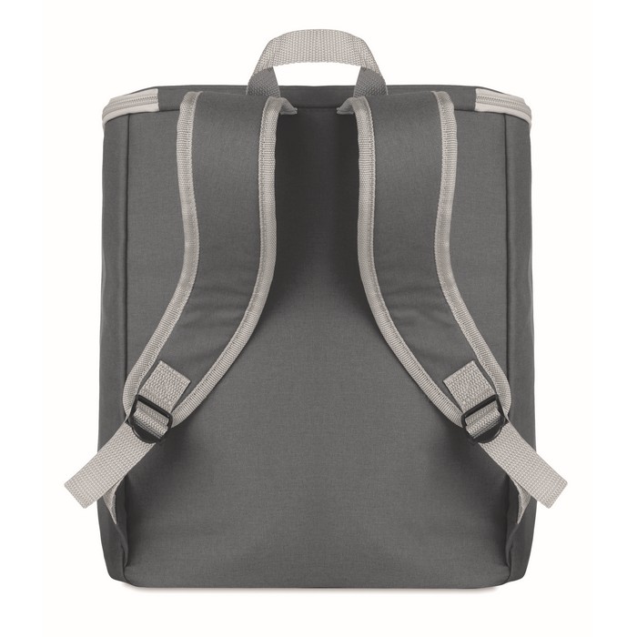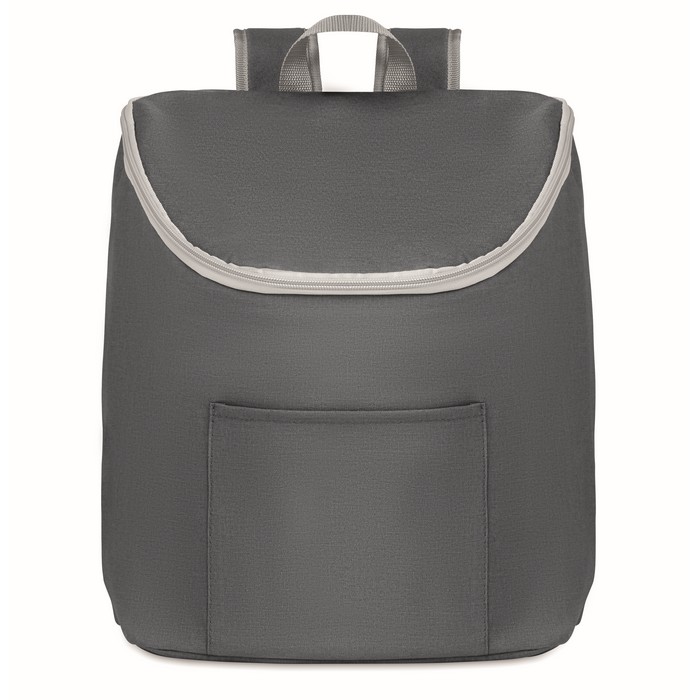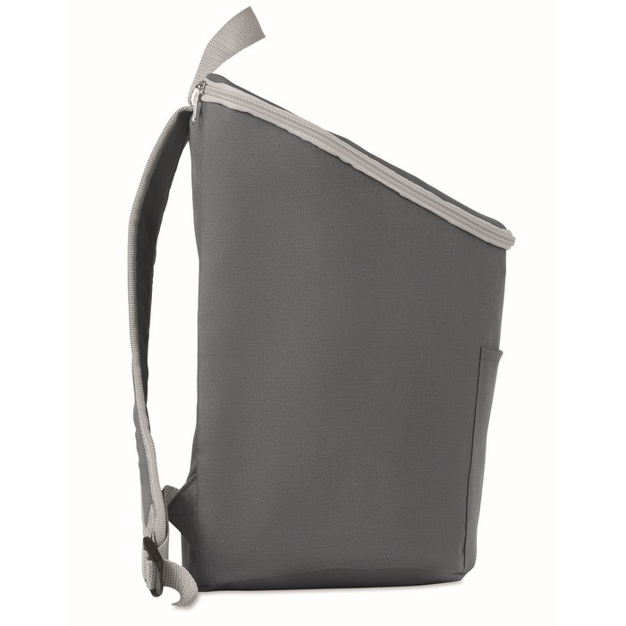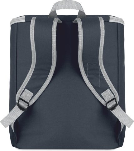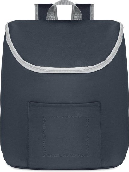 Cooler bag and backpack in 300D/PU polycanvas with front pocket. It has a 2 mm inside aluminium foil.