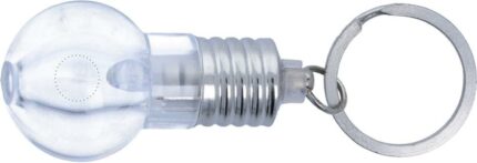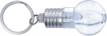 Light bulb key ring with white LED light. 3 cell batteries included. Each in a gift box.