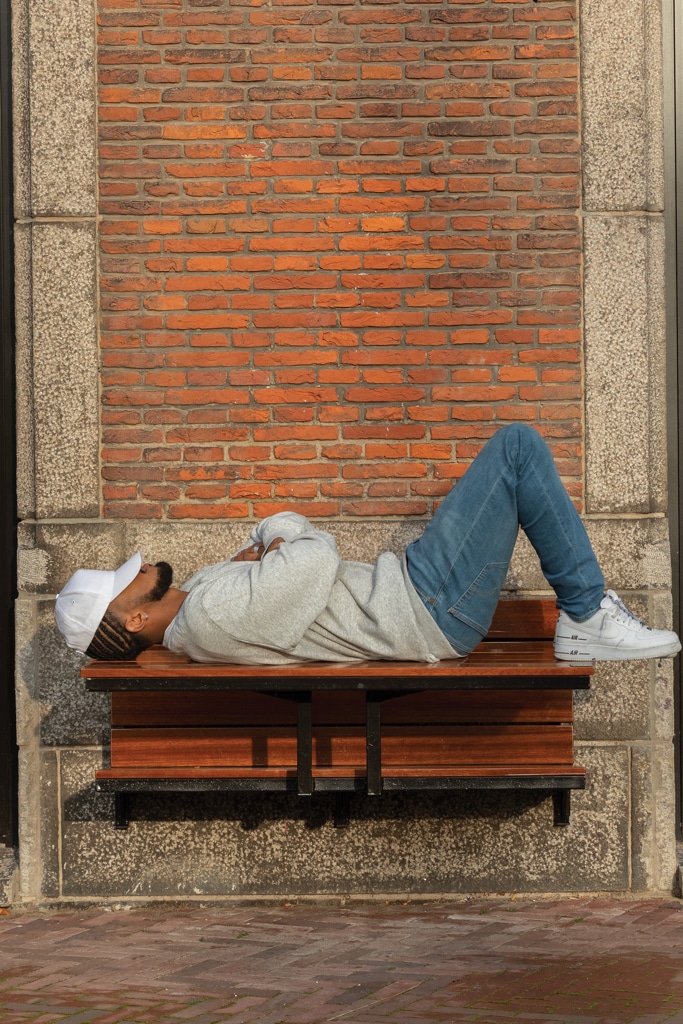 • Ένας άντρας με γκρι πουκάμισο κάθεται σε μαύρο φόντο, φορώντας Διαφημιστικα ή Εταιρικά Δώρ Μπλουζακια / T-Shirt