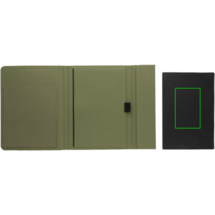 Keep all your work essentials organised in this beautiful A5 Aware™ RPET portfolio. Inside the portfolio you can find a matching notebook. The notebook contains 64 sheets/128 sheets cream coloured lined 80gm/s paper. Inside you will find 1 big sleeve pocket, 2 card slots and a pen loop. Magnetic closure. With AWARE™ tracer that validates the genuine use of recycled materials. Each portfolio saves 3.9 litres of water and has reused 6.5 0.5L PET bottles. 2% of proceeds of each Impact product sold will be donated to Water.org. PVC free.