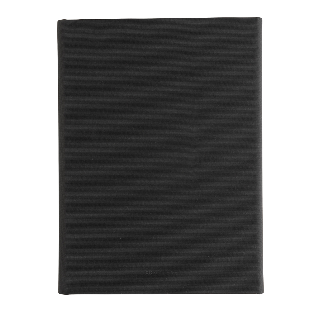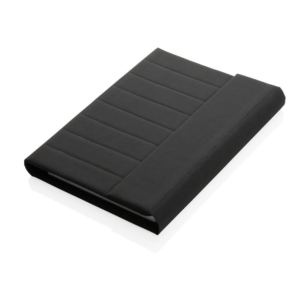 Keep all your work essentials organised in this beautiful A5 Aware™ RPET portfolio. Inside the portfolio you can find a matching notebook. The notebook contains 64 sheets/128 sheets cream coloured lined 80gm/s paper. Inside you will find 1 big sleeve pocket, 2 card slots and a pen loop. Magnetic closure. With AWARE™ tracer that validates the genuine use of recycled materials. Each portfolio saves 3.9 litres of water and has reused 6.5 0.5L PET bottles. 2% of proceeds of each Impact product sold will be donated to Water.org. PVC free.