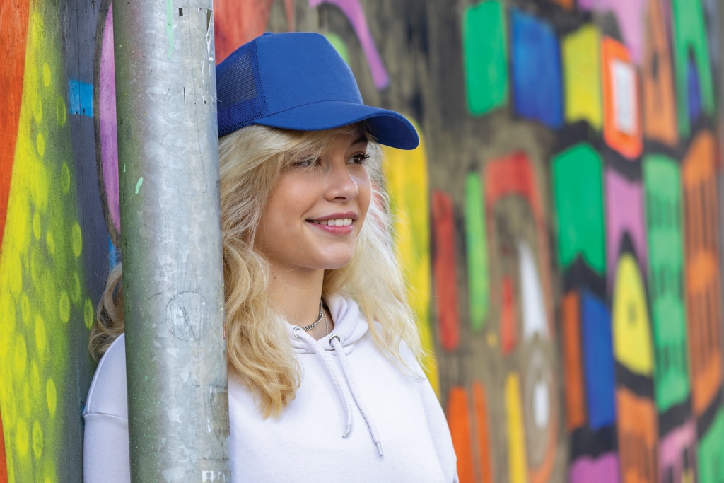 The trucker cap that was very popular in the 80s is back again and looks better than ever. Not only looking better but also telling a true sustainable story! This 5 panel trucker cap with curved visor is made with brushed recycled 190gr cotton that is embedded with AWARE™ tracer technology. With AWARE™, the use of genuine recycled fabric materials and water reduction impact claims are guaranteed. Save water and use genuine recycled fabrics. If you choose this item you save 83 litres of water. With the focus on water, 2% of proceeds of each sold Impact product will be donated to Water.org. The trucker cap has a recycled mesh back with velcro closure. Water savings are based on figures when compared to conventional fibre. This calculated indication is based on reliable LCA data as published by Textile Exchange in their Material Snapshots 2016.