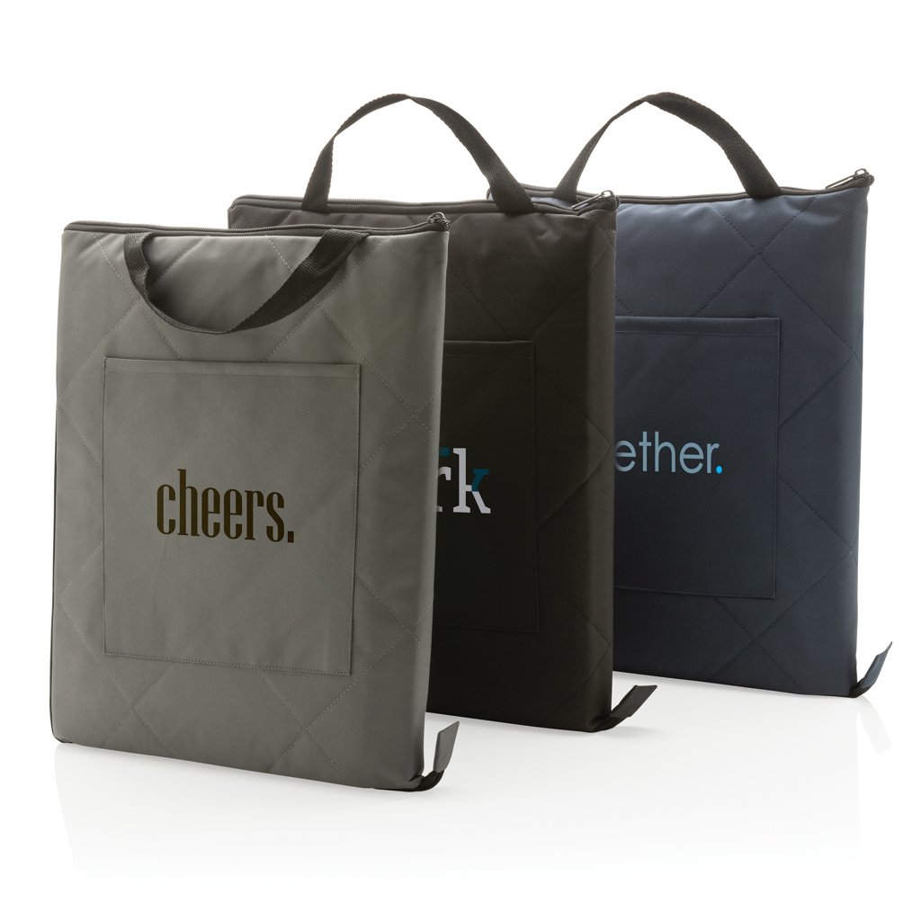 This beautiful quilted picnic blanket features 100% recycled PET materials. The large pocket on the front displays your logo proud and will make carrying your essentials a breeze. The blanket measures 145 x130 cm unfolded. Incorporating the AWARE™ tracer that validates the genuine use of recycled materials. Each picnic blanket saves 21.3 litres of water. 2% of proceeds of each Impact product sold will be donated to Water.org.