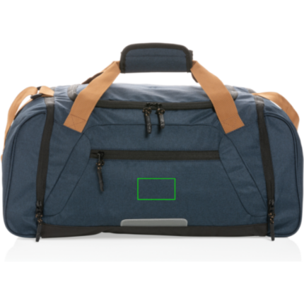 The Impact AWARE™ Urban outdoor weekend bag has more than enough room for a weekend getaway! It also has an outdoor-inspired design. The bag features a front zipper compartment and one big main compartment. The side zipper pockets offers quick access to your daily essentials. The backpack is made with two tone 50% recycled polyester and 100% recycled polyester lining. With AWARE™ tracer that validates the genuine use of recycled materials. Each bag saves 14.33 litres of water and has reused 24.05 0.5L PET bottles. 2% of proceeds of each Impact product sold will be donated to Water.org.