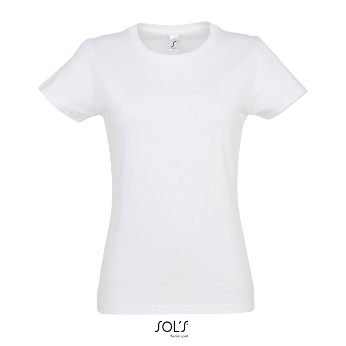 SOL’S IMPERIAL women’s heavy T-shirt in 190g/m², SOL’S has become the ”reference” garment thanks to its quality, quality, 42 colours, 9 sizes, women’s and children’s models. Reinforced neck seam, ribbed collar with elastane, fitted cut with sewn side seam. Fabric details: 190g/m2 single jersey, 100% semi-combed ringspun cotton. OEKO-TEX®. Only sold with print