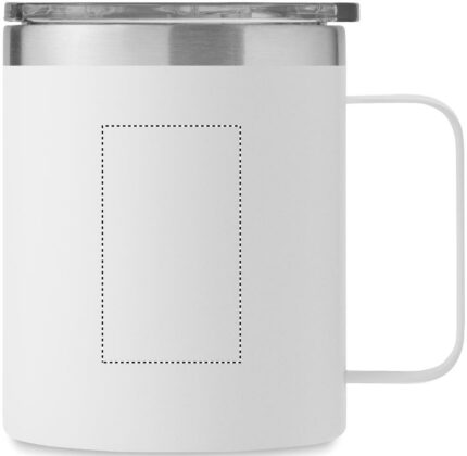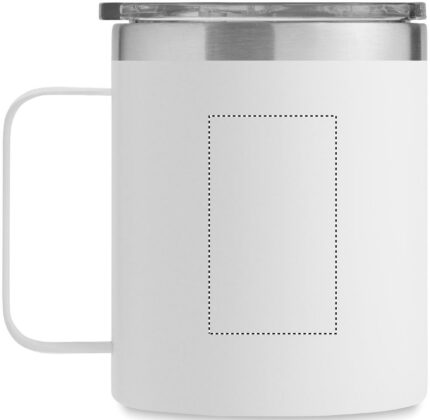 Double wall recycled stainless steel (90% recycled stainless and 10% stainless steel) mug with sliding sip hole cover. Leak-free. Capacity: 300 ml.