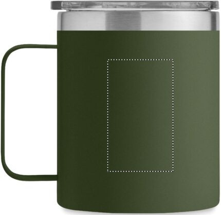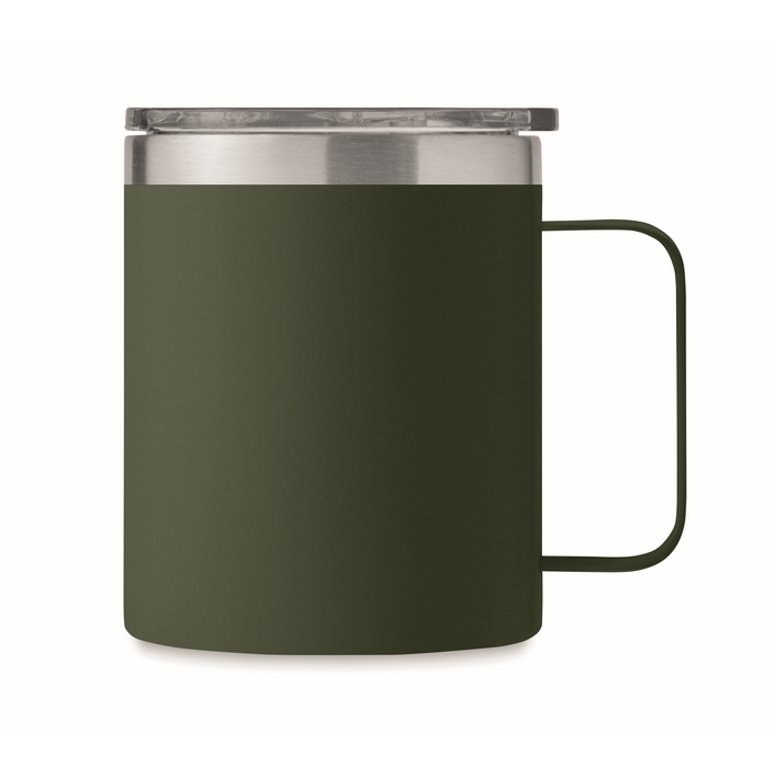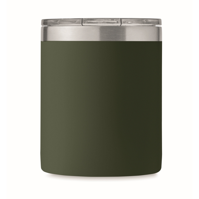 Double wall recycled stainless steel (90% recycled stainless and 10% stainless steel) mug with sliding sip hole cover. Leak-free. Capacity: 300 ml.