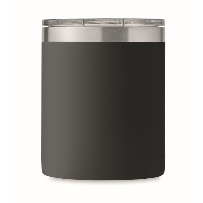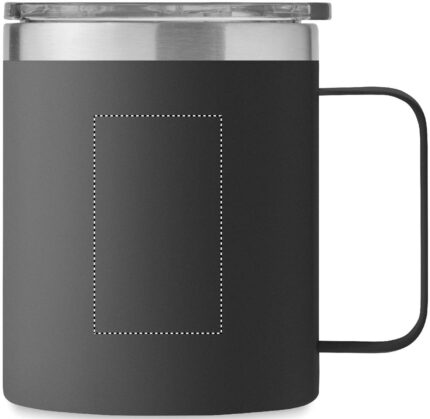 Double wall recycled stainless steel (90% recycled stainless and 10% stainless steel) mug with sliding sip hole cover. Leak-free. Capacity: 300 ml.
