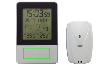In/outdoor weather station with LCD screen and special outdoor sensor. Functions: Time and calendar, indoor/outdoor temperature, weather forecast, humidity and alarm.
