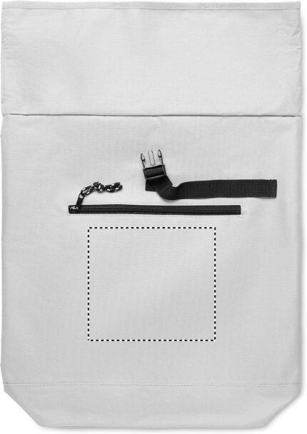 15 inch rolltop laptop backpack in 600D polyester with padded back and base reinforcement. Zippered front pocket. 210D lining.