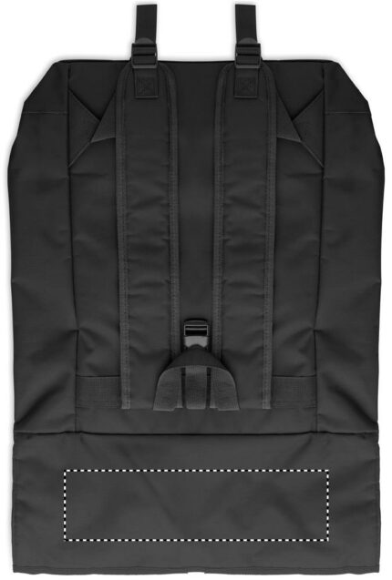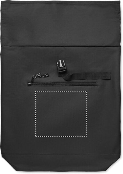 15 inch rolltop laptop backpack in 600D polyester with padded back and base reinforcement. Zippered front pocket. 210D lining.
