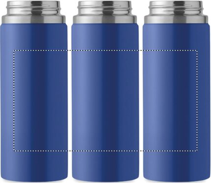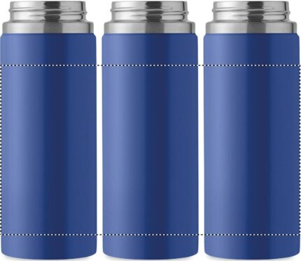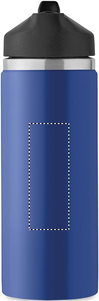 Double wall recycled stainless steel (90% recycled stainless and 10% stainless steel) insulated vacuum bottle with grip handle lid in PP and integrated straw built-in straw cap. Leak-free. Capacity: 500 ml.