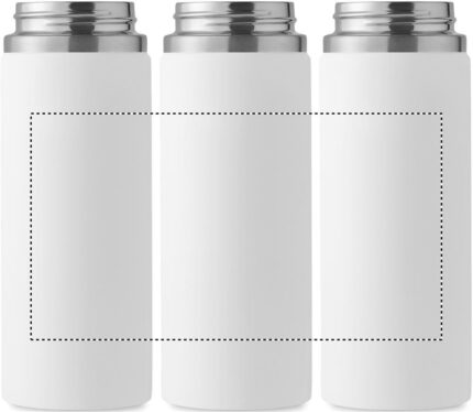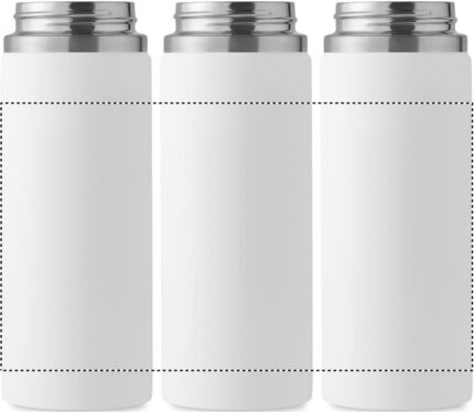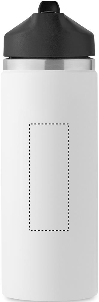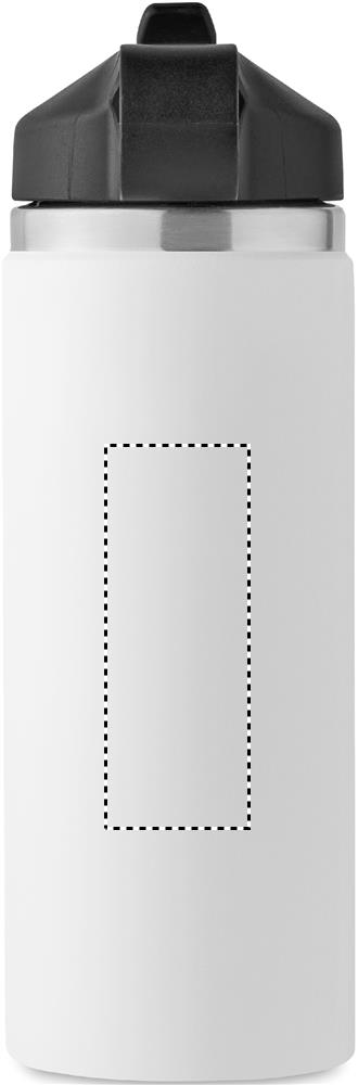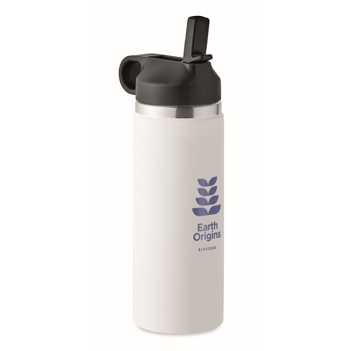 Double wall recycled stainless steel (90% recycled stainless and 10% stainless steel) insulated vacuum bottle with grip handle lid in PP and integrated straw built-in straw cap. Leak-free. Capacity: 500 ml.