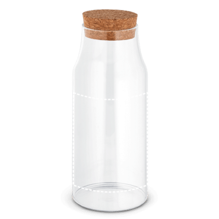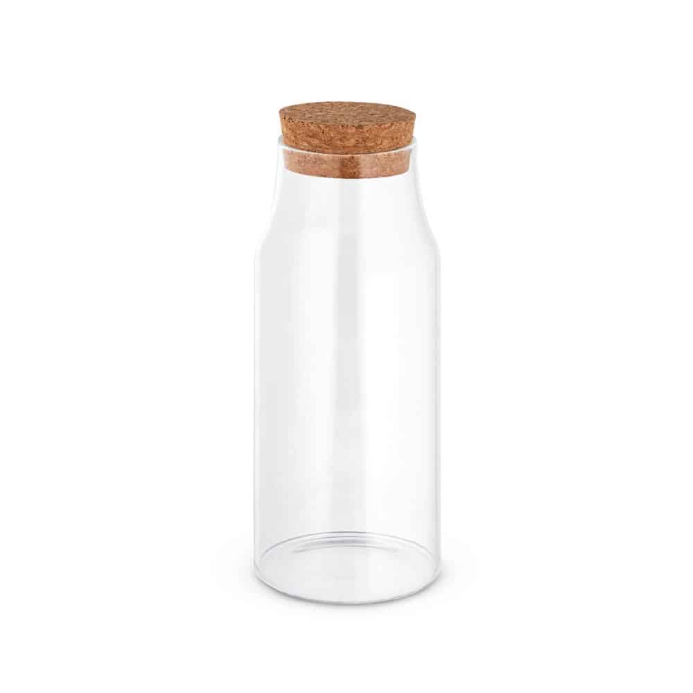 Borosilicate glass bottle with cork lid. Food grade. Capacity up to 800 mL. Supplied in a box. ø80 x 190 mm