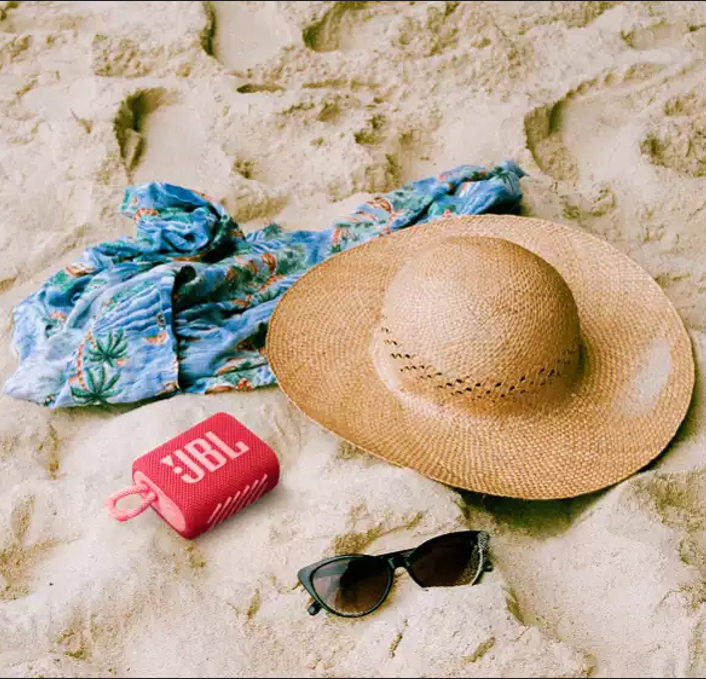 The JBL GO 3 has a bold style and ultra-portable design. The speaker has an Original JBL Pro Sound and is IP67 waterproof and dustproof. This speaker gives you up to 5 hours of playtime on a single charge.