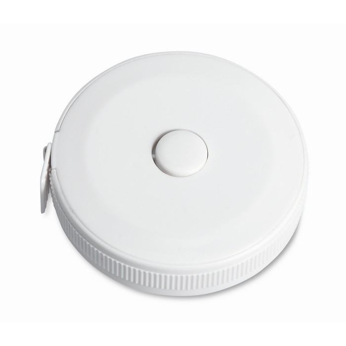 1m ABS measuring tape in round shape. With push button to fold and unfold it. Has cm and inches measurement.