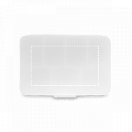 Pill box with lid and 7 compartments, ideal to separate pills by weekdays. 85 x 55 x 20 mm