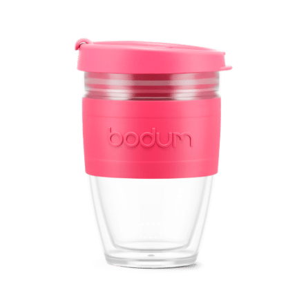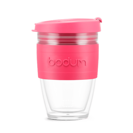 Double-walled insulated travel mug made of BPA-free material, with a transparent body, silicone strip for comfort and colour-matching anti-spill lid. The Joycups innovative insulated design keeps hot and cold drinks at the ideal temperature for longer, making it an ideal alternative to disposable cups. Dishwasher safe. It has a capacity of up to 250 mL. Supplied in a gift card sleeve. 95 x 133 x 85 mm