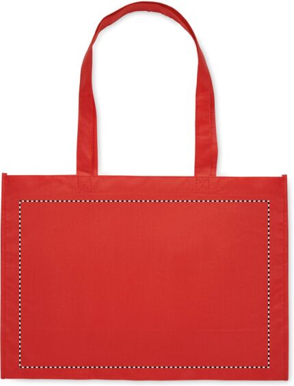 Shopping or beach bag in RPET non-woven with gussets and long handles. 80 gr/m².
