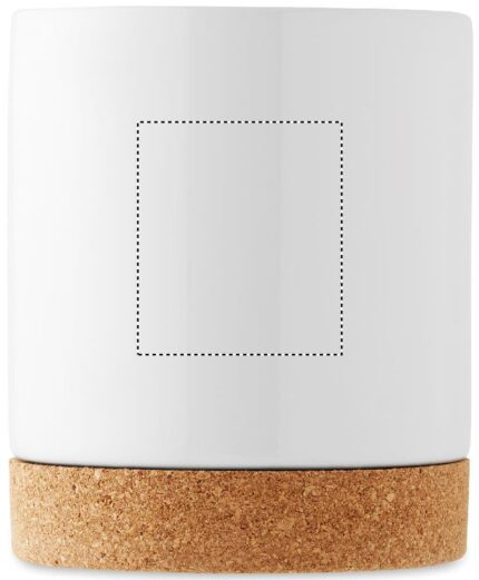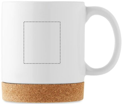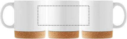 Ceramic mug with special coating for sublimation print and cork base detail. Capacity: 280 ml. Cork is a natural product, there may be slight variations in colour and size per item, which can affect the final decoration outcome.