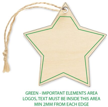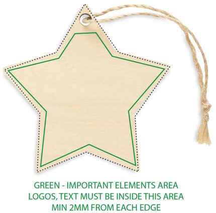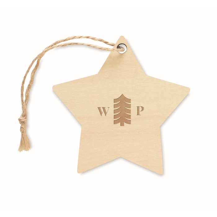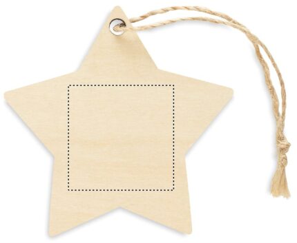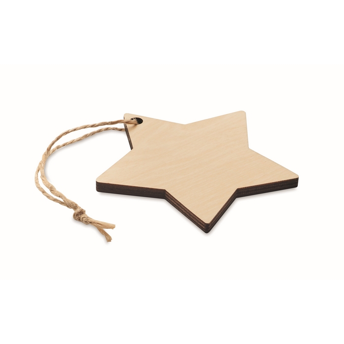 Christmas ornament in plywood with jute rope for sublimation in star shape. White imprint is not possible.