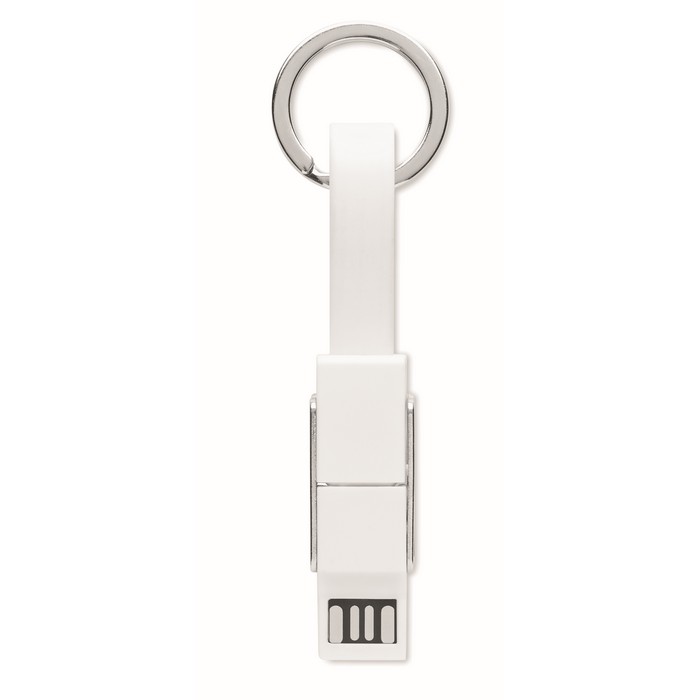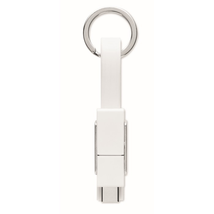 Key ring with 4-in-1 charging cable charging cable. In/Output: Type-C x2, Type-A, Micro USB.