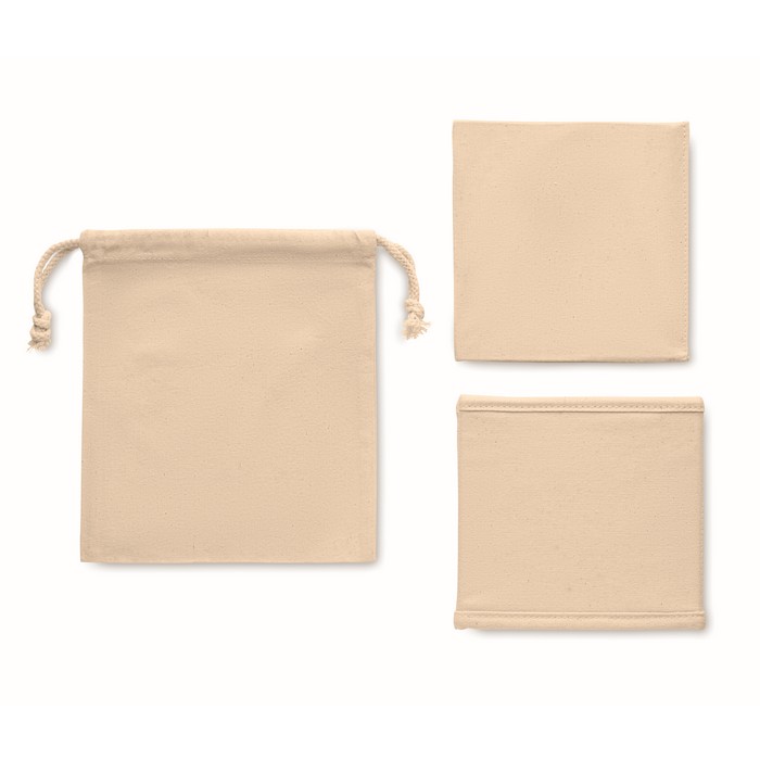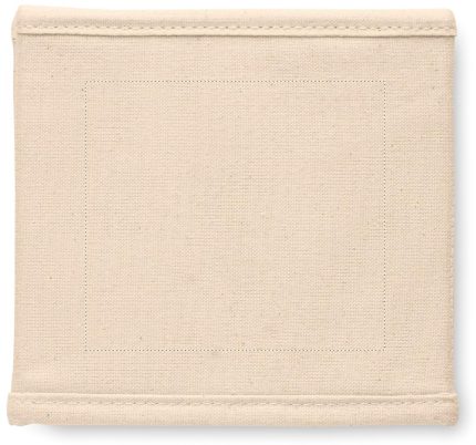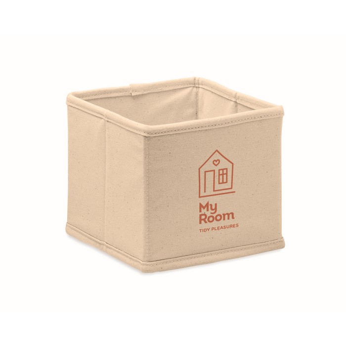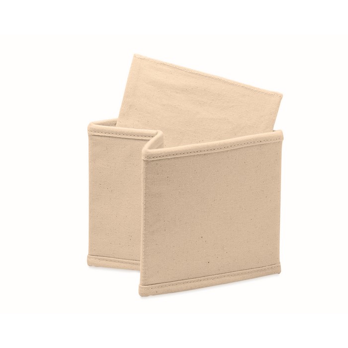 Small foldable accessories or storage box in cotton (220 gr/m²). Presented in cotton (140 gr/m²) drawcord pouch.