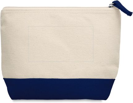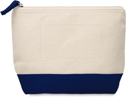 Cosmetic bag in cotton with coloured bottom and matching zipper puller. 340 gr/m².