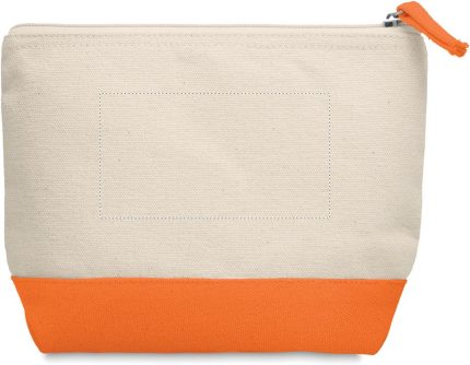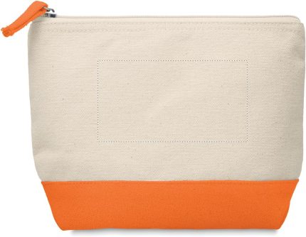 Cosmetic bag in cotton with coloured bottom and matching zipper puller. 340 gr/m².
