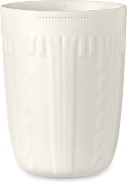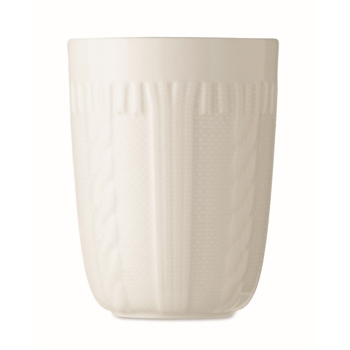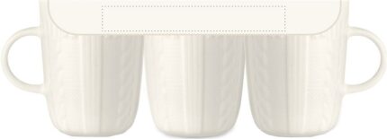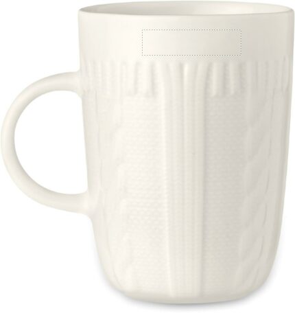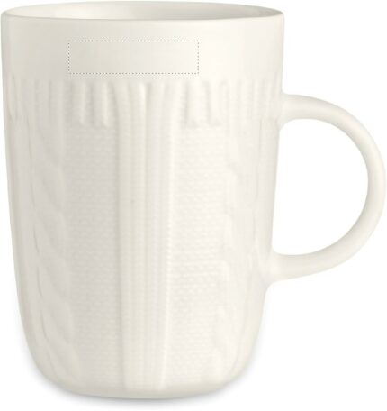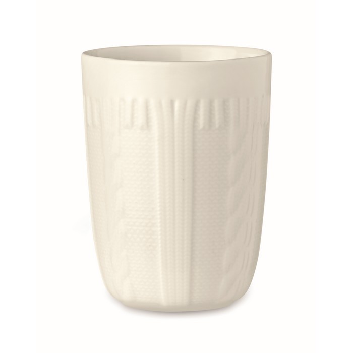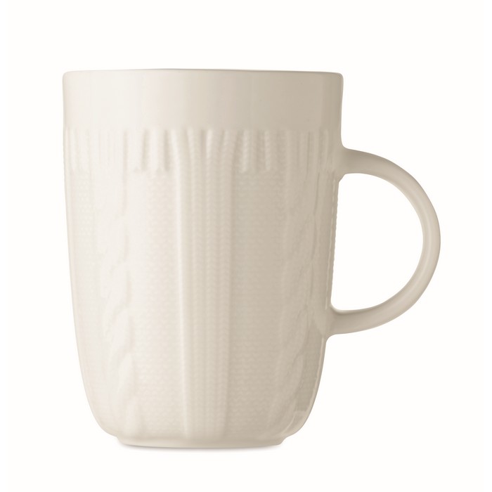 Knitted look design ceramic mug. Capacity: 310 ml. Presented in individual box.