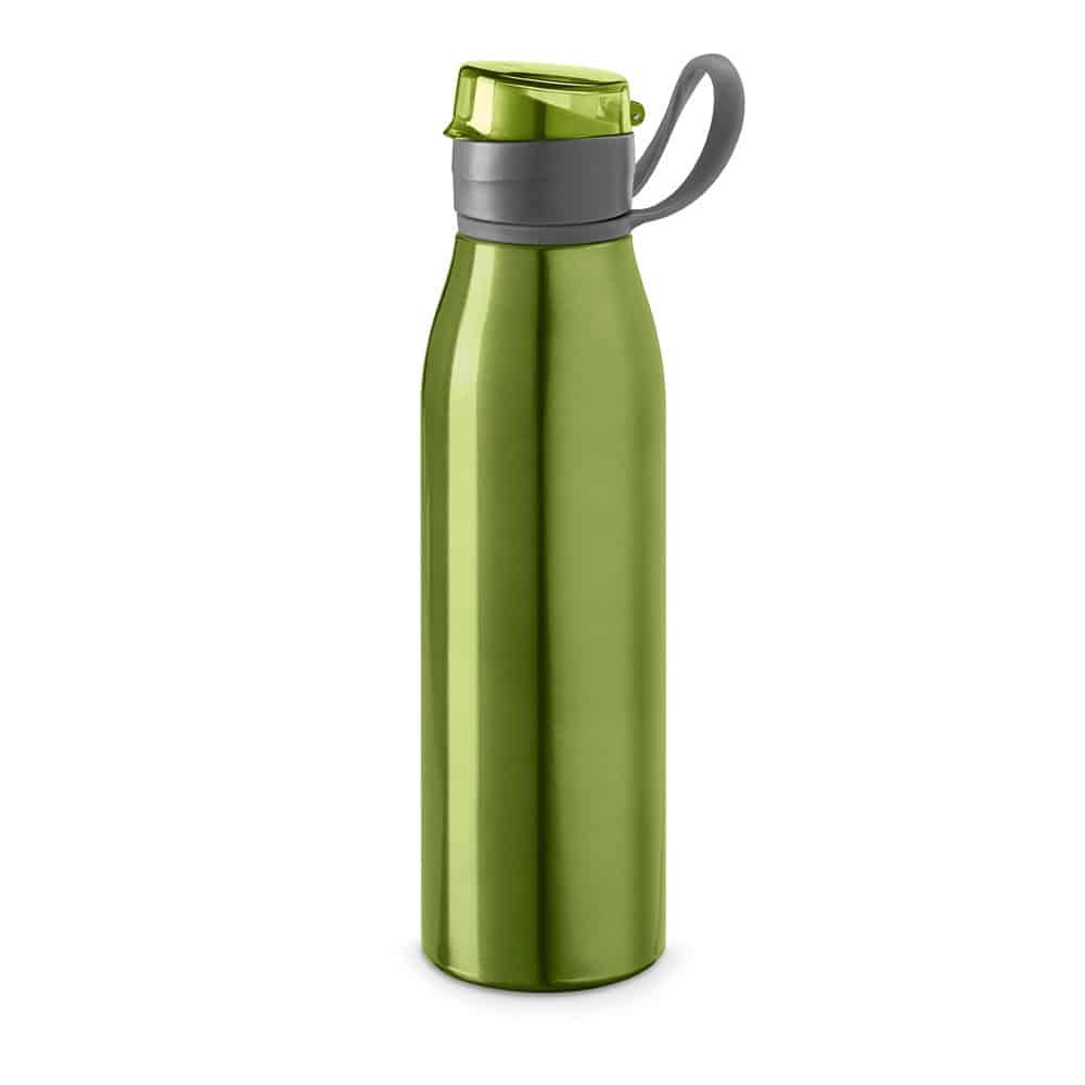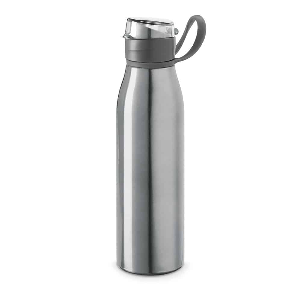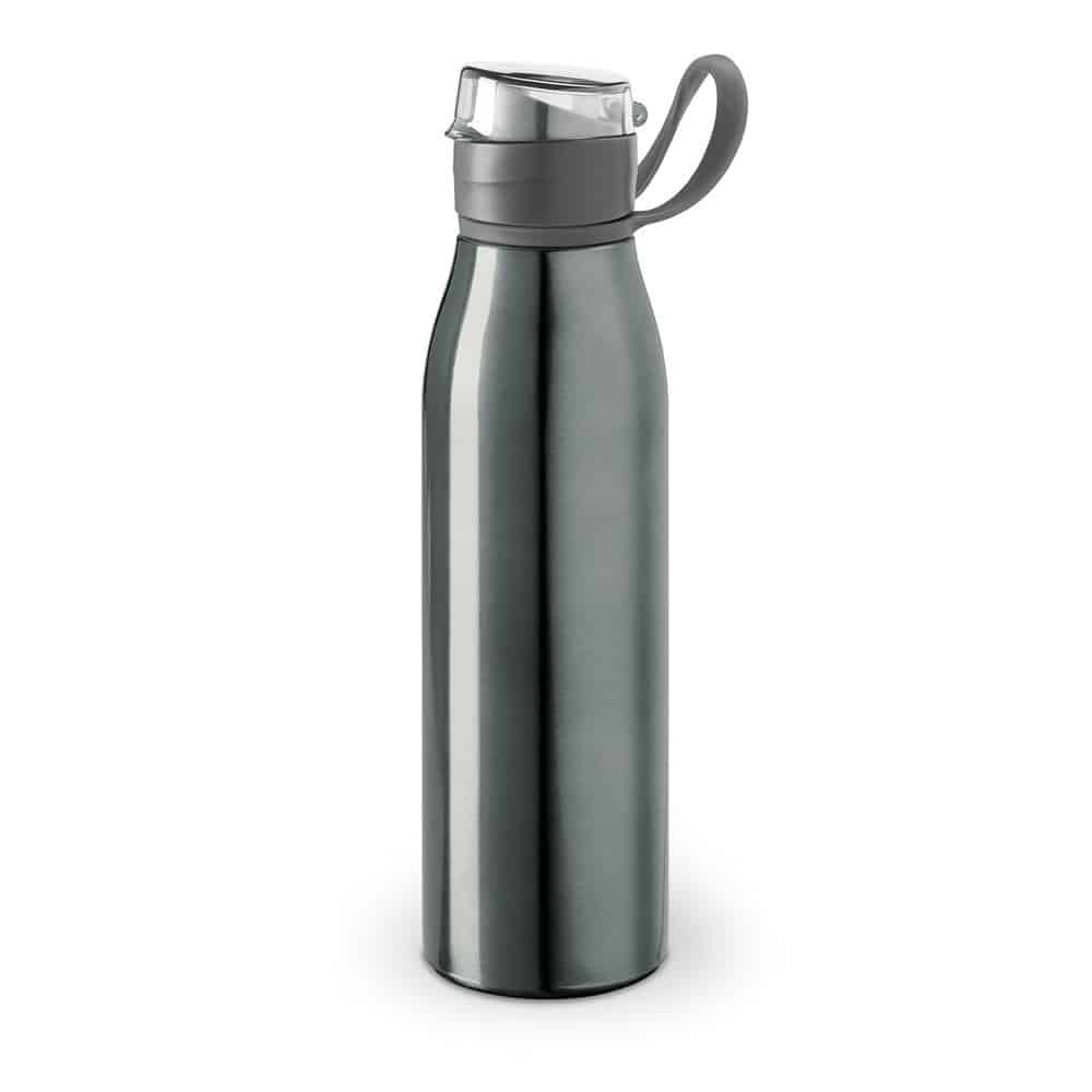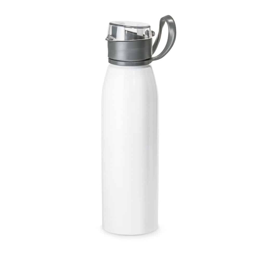 Single wall sports bottle in aluminium and AS with lid and handle. *Transport in an upright position. Capacity up to 650 mL. ø66 x 250 mm