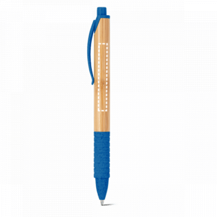 Bamboo ball pen with non-slip grip and trim in wheat fibre and ABS. Environmentally friendly ball pen. Blue ink. ø11 x 142 mm