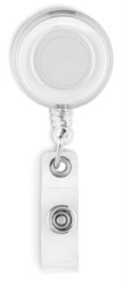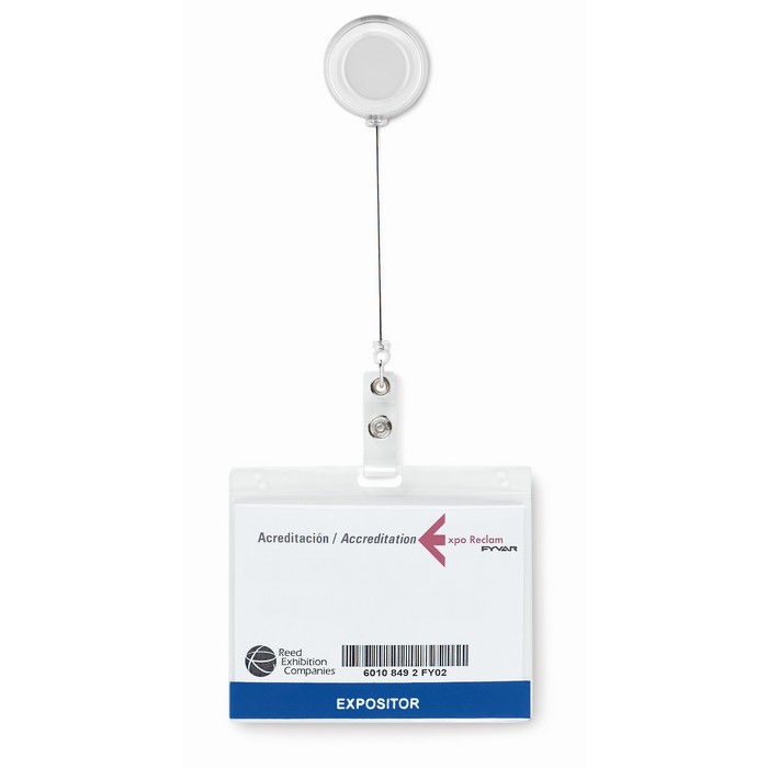 Badge holder with metallic clip.