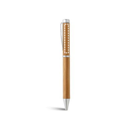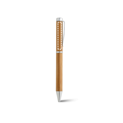 Bamboo ball pen with twist mechanism and metal clip. Environmentally friendly ball pen. Blue ink. Supplied with kraft paper gift pouch. ø11 x 137 mm | Pouch: 155 x 40 mm