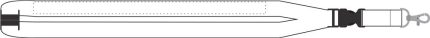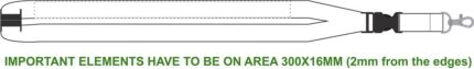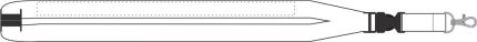 Lanyard with metal hook, detachable buckle and safety breakaway. 20 mm wide.