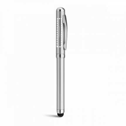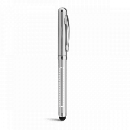 Multifunction metal ball pen with clip. Ball pen with mini LED torch, laser pointer and touch tip. Supplied in a metal case. Includes 3 LR41 batteries. Blue ink. ø10 x 125 mm | Box: 178 x 38 x 19 mm