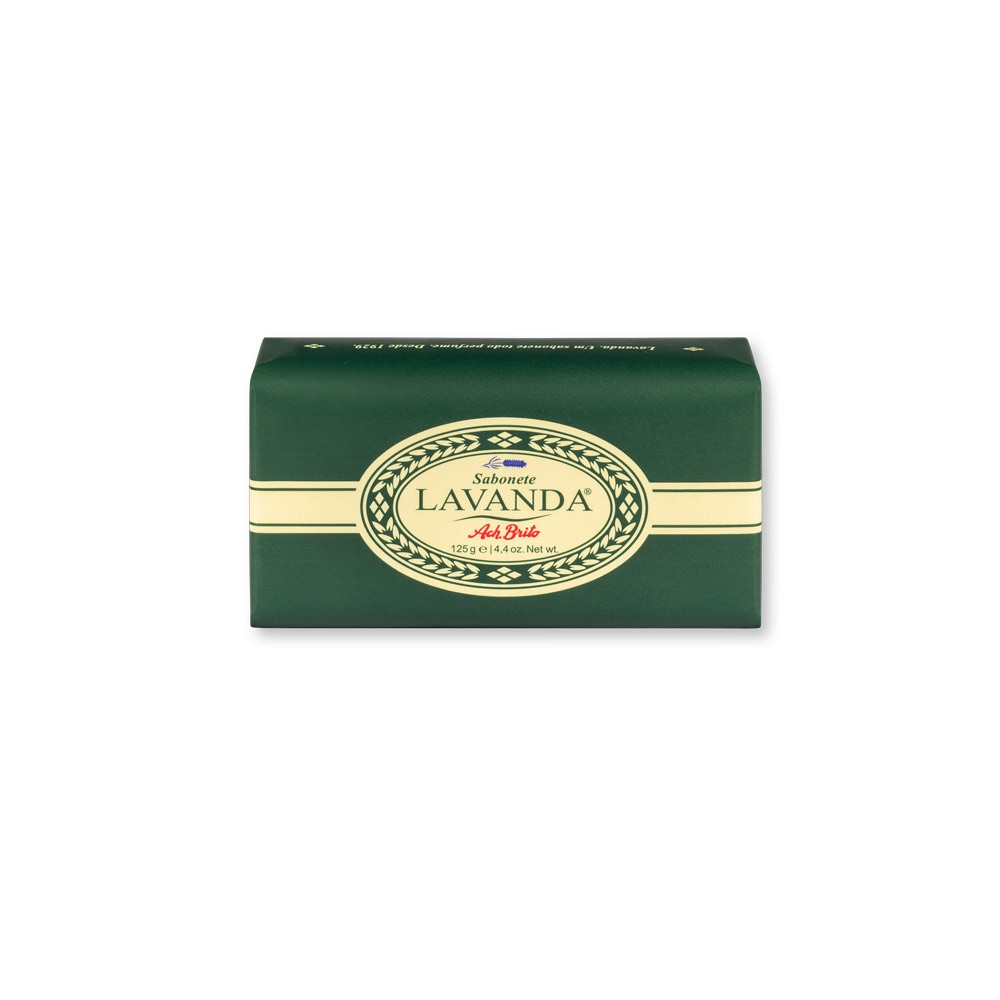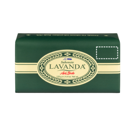 Soap made with a vegetable soap base and Lavender fragrance, with a soft texture that leaves the skin perfumed. Traditionally produced in Portugal. Capacity 125 g. Classic design packaging that retains the original design, with its green background decorated with small graphics representing lavender flowers. 90 x 53 x 20 mm