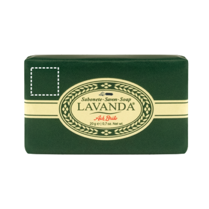 Soap made with a vegetable soap base and Lavender fragrance, with a soft texture that leaves the skin perfumed. Its small size is ideal for carrying in your gym bag or for travelling. Traditionally produced in Portugal. Capacity 20 g. Classic packaging that retains the original design, with its green background decorated with small graphics representing lavender flowers. 59 x 34 x 10 mm